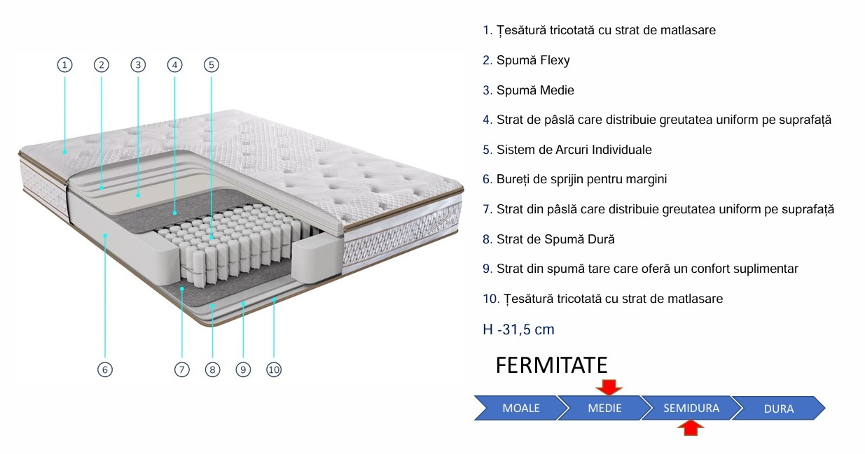 Salteaua ortopedica Coppertech Smart de la Bellona combină tehnologia inovatoare Coppertech cu un design ergonomic pentru a oferi un somn odihnitor. Cu o înălțime de 31,5 cm și un sistem de arcuri individuale, aceasta asigură susținere optimă și adaptabilitate la conturul corpului. Stratul superior, matlasat și detașabil cu fermoar, permite utilizarea ambelor fețe ale saltelei, oferind fermitate variabilă. Tehnologia Coppertech contribuie la eliminarea bacteriilor și microorganismelor, asigurând un mediu de dormit igienic. Ideală pentru cei care caută o saltea ortopedică de calitate.