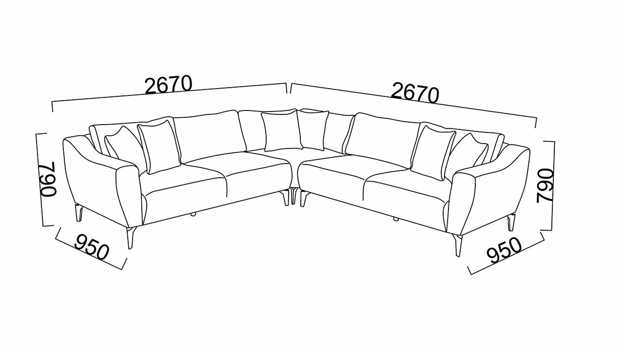 Canapeaua de colț Sanvela (267x267 cm) este un model modular stilat și spațios, cu colț interschimbabil, ideal pentru orice living. Datorită formei sale pătrate și construcției universale, asigură confort maxim și flexibilitate în amenajare. Dimensiuni: L 267x267 cm, A 95 cm, Î 79 cm.
