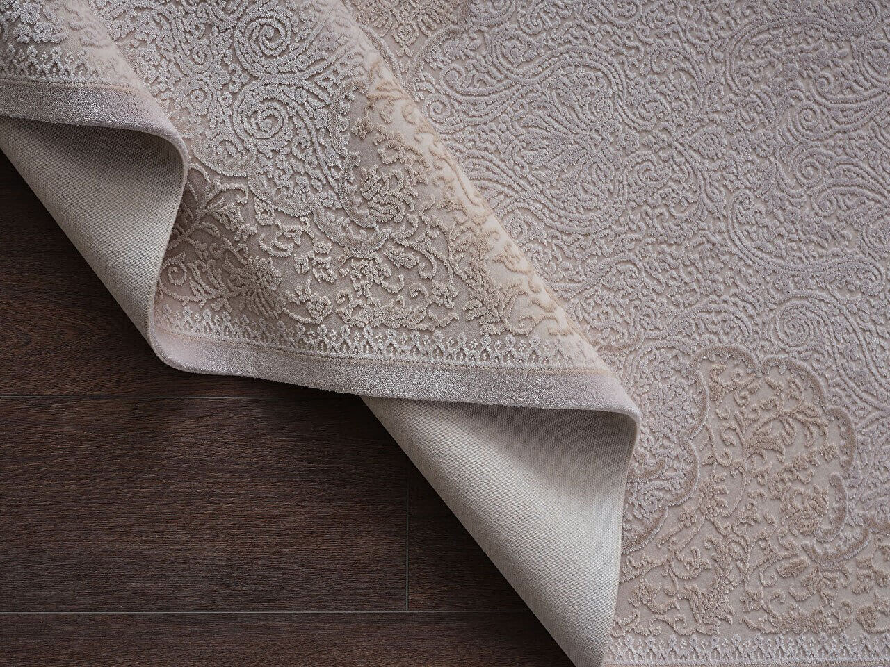 Seria Esiliva impresionează prin stilul său distinct și rafinat, combinând armonios designul modern cu accentele clasice. Realizat dintr‑un amestec de 60 % vâscoză și 40 % acril, acest covor oferă un luciu aparte și o textură moale, asemănătoare covoarelor din mătase.