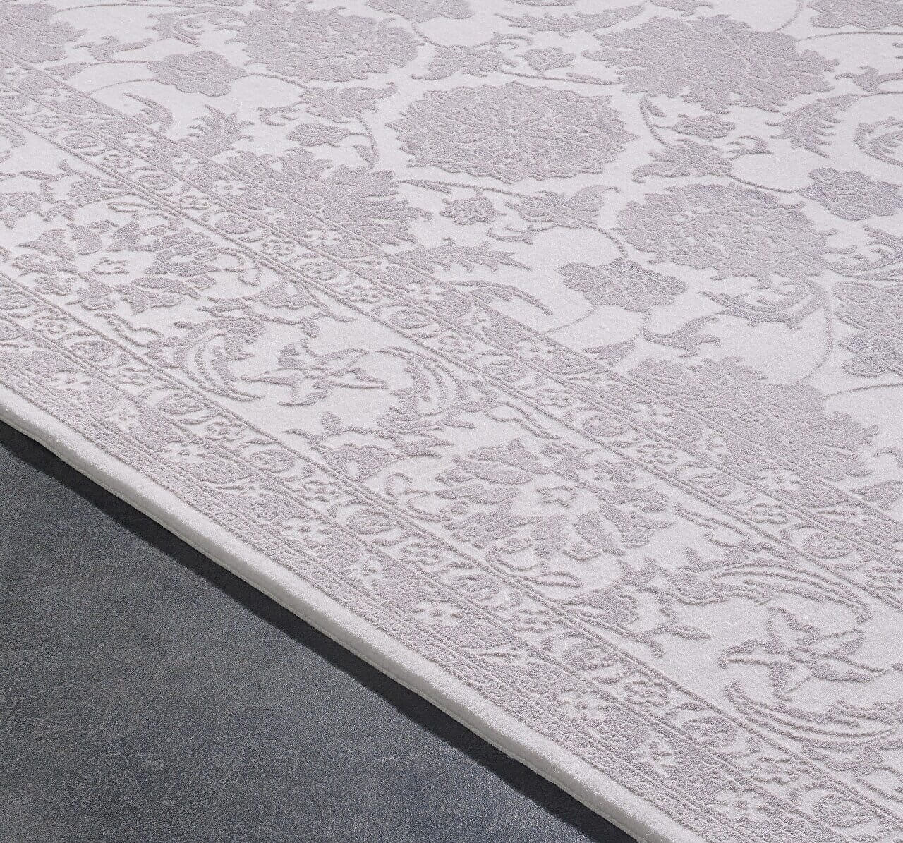 Seria de covoare Esiliva impresionează prin stilul său distinct și rafinat, combinând armonios designul modern cu accentele clasice. Covorul se remarcă prin modelul său elegant, cu un contrast subtil de nuanțe de gri și detalii geometrice fine, care adaugă profunzime și personalitate oricărui spațiu. Realizat dintr-un amestec de 60% vâscoză și 40% acril, acest covor oferă un luciu delicat și o textură moale, asemănătoare covoarelor din mătase.
