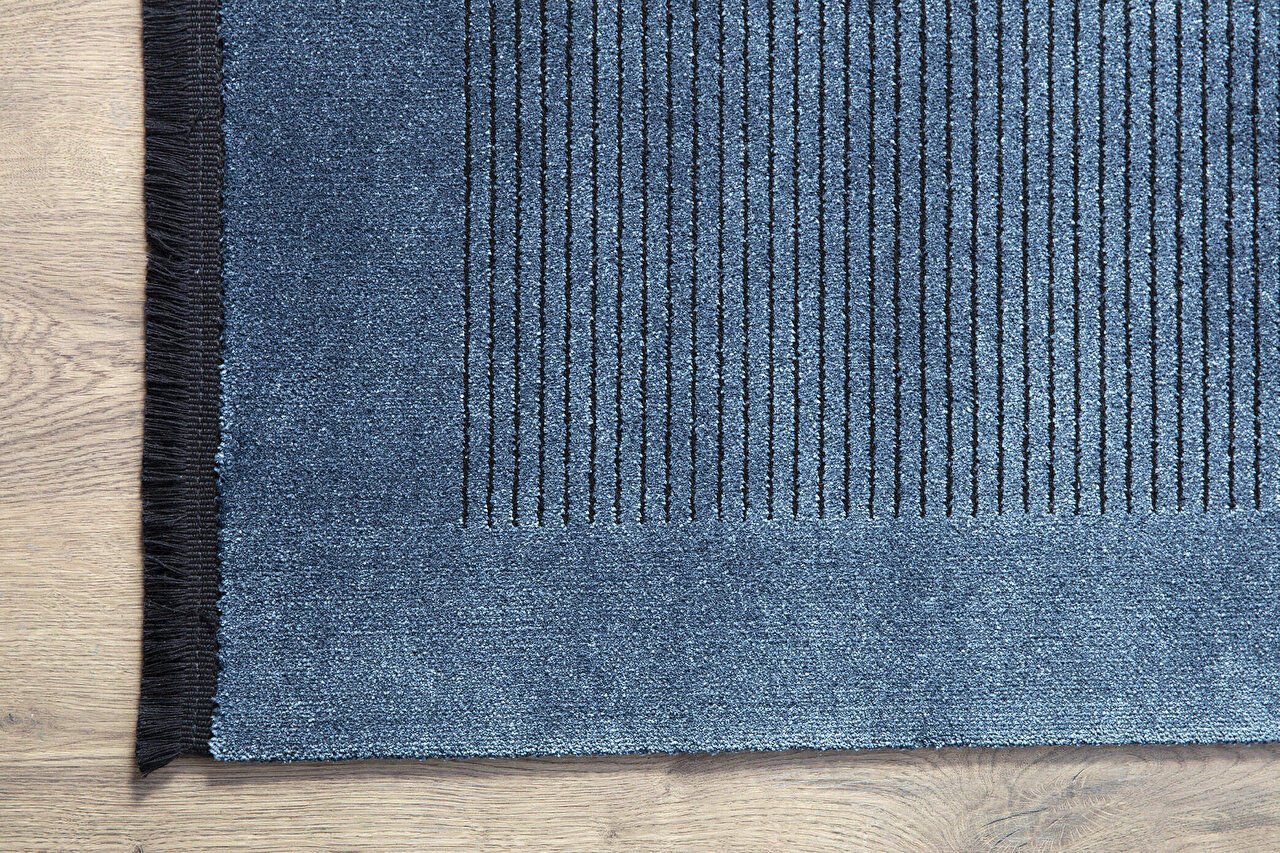 ✔ Design contemporan – covorul se evidențiază prin nuanțe calme și rafinate de albastru (mavi), combinate cu detalii grafice moderne. Această paletă cromatică adaugă profunzime și serenitate în încăpere, ideală pentru interioare în stil scandinav, minimalist sau clasic‑modern.