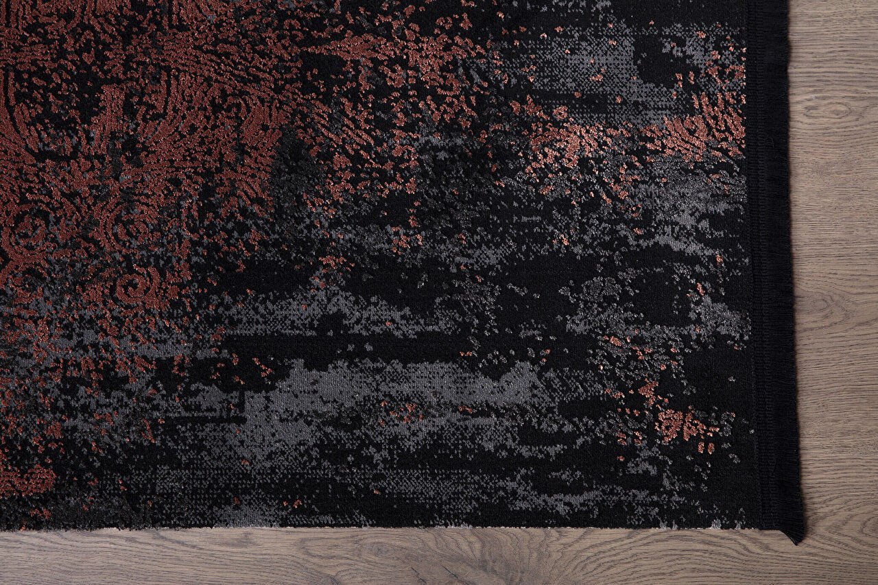 ✔ Design contemporan –covorul se caracterizează prin tonuri calde de cupru/ardere (“bakır”) ce aduc profunzime, eleganță și o nuanță metalică subtilă în cameră. Detaliile sofisticate și echilibrul cromatic îl fac potrivit pentru spații moderne care doresc un accent de stil fără a deveni prea ostentativ.