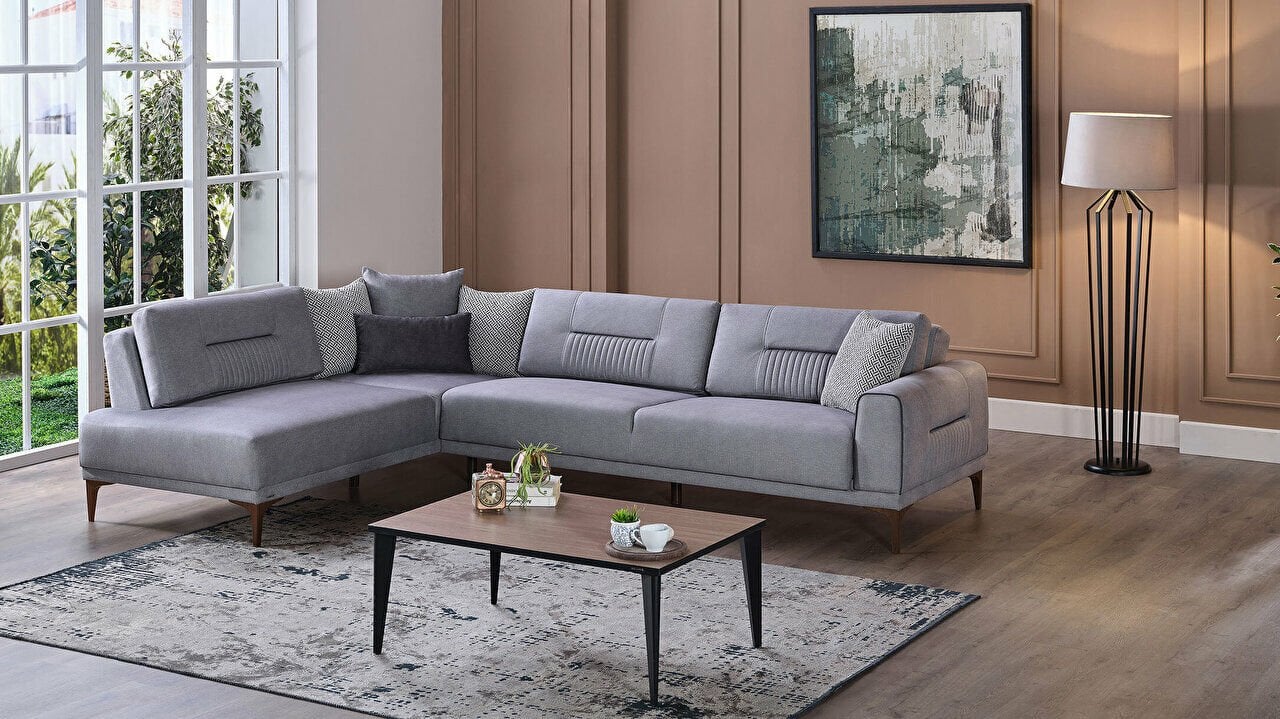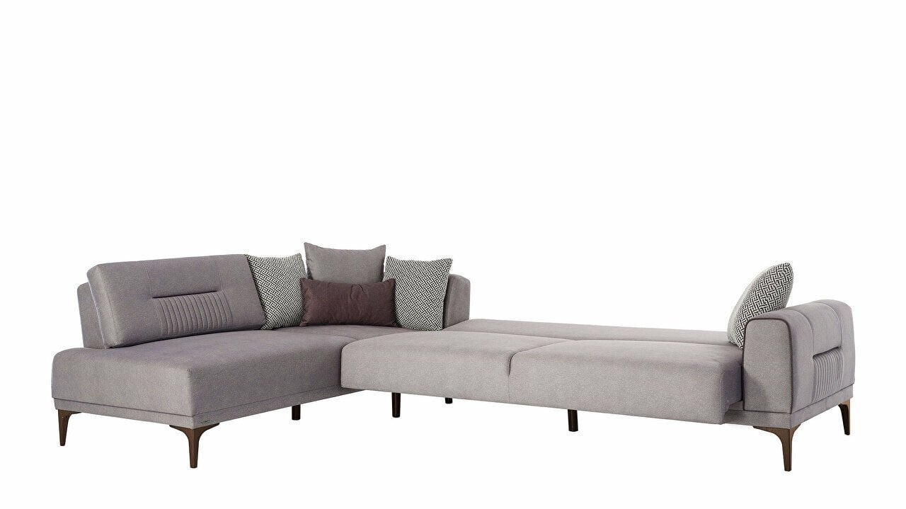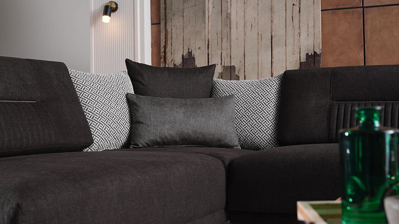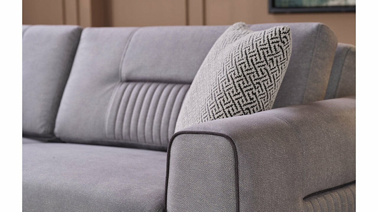 Canapeaua de colț extensibilă Seul (314x215 cm) este un model modern și spațios, care va deveni elementul central al livingului dumneavoastră. Datorită dimensiunilor sale și a șezutului adânc, oferă un nivel înalt de confort. Canapeaua se transformă ușor într-un spațiu de dormit mare. Modelul are o construcție modulară și poate fi asamblat atât cu colț pe dreapta, cât și pe stânga.