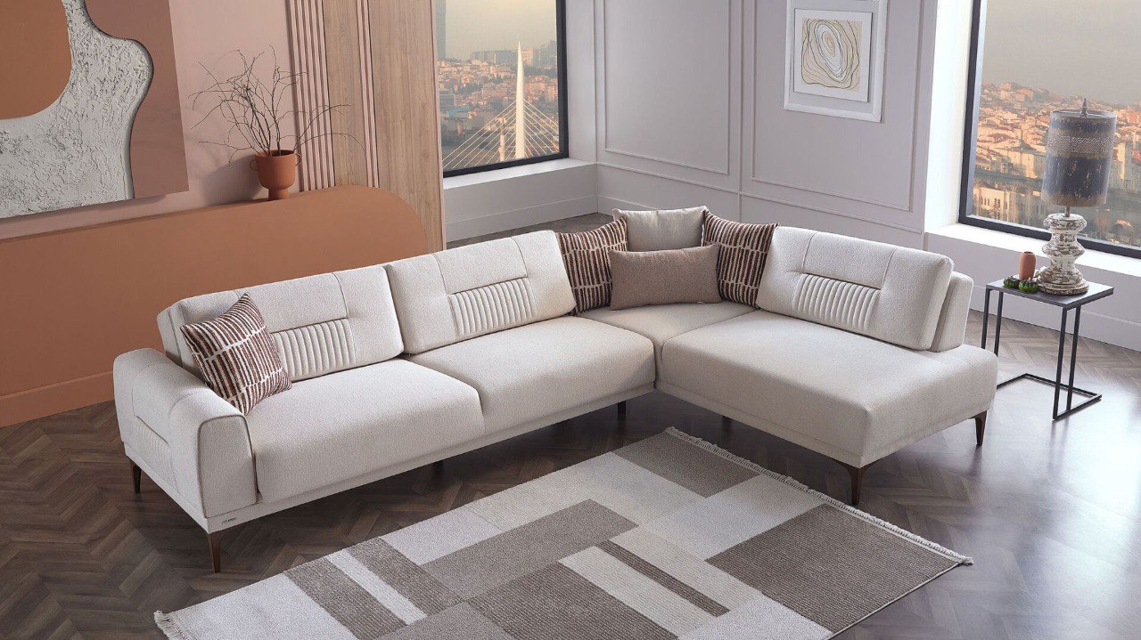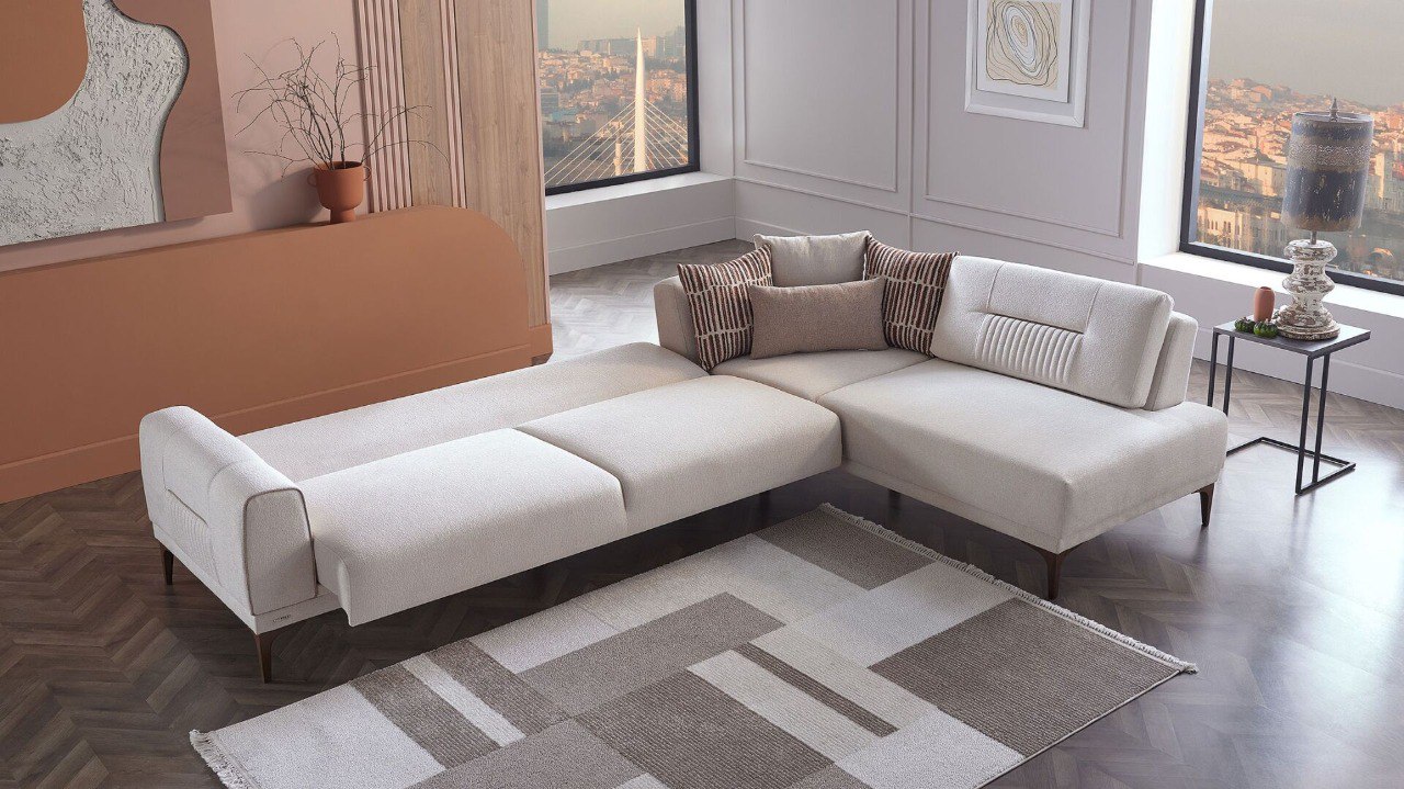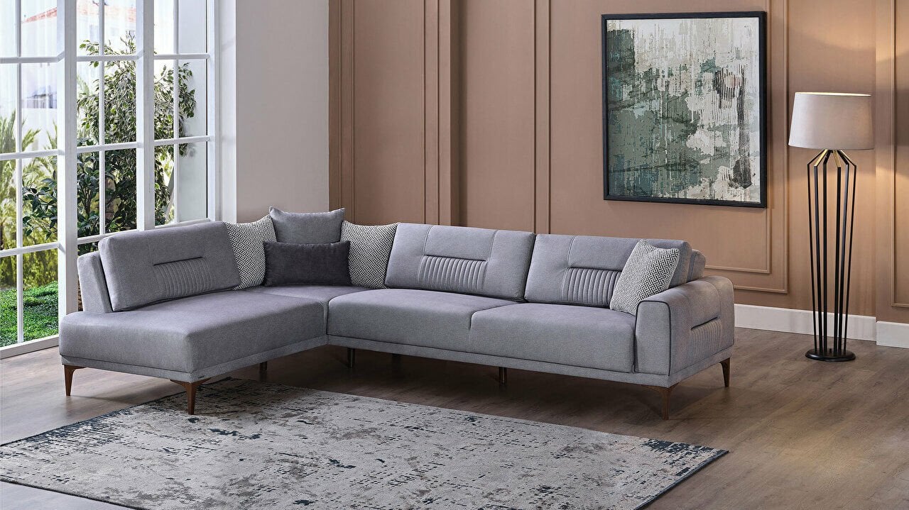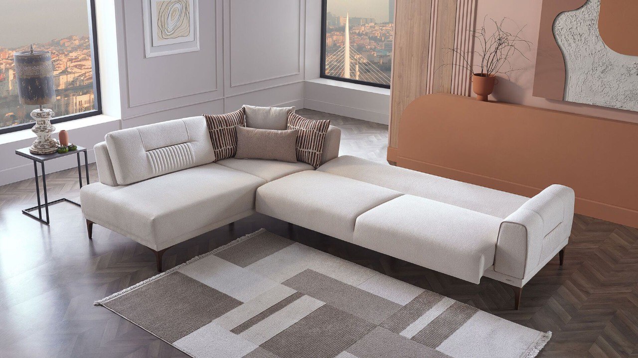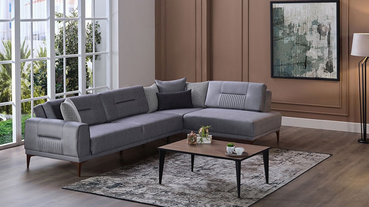 Canapeaua de colț extensibilă Seul (314x215 cm) este un model modern și spațios, care va deveni elementul central al livingului dumneavoastră. Datorită dimensiunilor sale și a șezutului adânc, oferă un nivel înalt de confort. Canapeaua se transformă ușor într-un spațiu de dormit mare. Modelul are o construcție modulară și poate fi asamblat atât cu colț pe dreapta, cât și pe stânga.