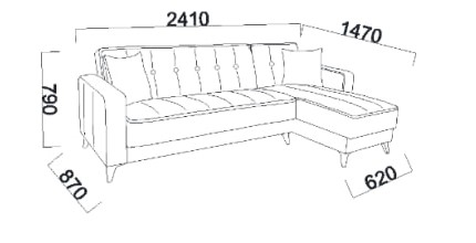 Canapeaua de colț extensibilă Parker (241x147 cm) — este o canapea compactă și modernă, ideală pentru livinguri mici, garsoniere sau camere de oaspeți. Caracteristica principală a acestui model este colțul interschimbabil (universal), care permite schimbarea ușoară a poziției (dreapta/stânga) în orice moment. Canapeaua are un mecanism de transformare, devenind un spațiu de dormit confortabil, și este echipată cu o ladă pentru lenjerie. Dimensiuni: L 241x147 cm, A 87 cm, Î 79 cm.