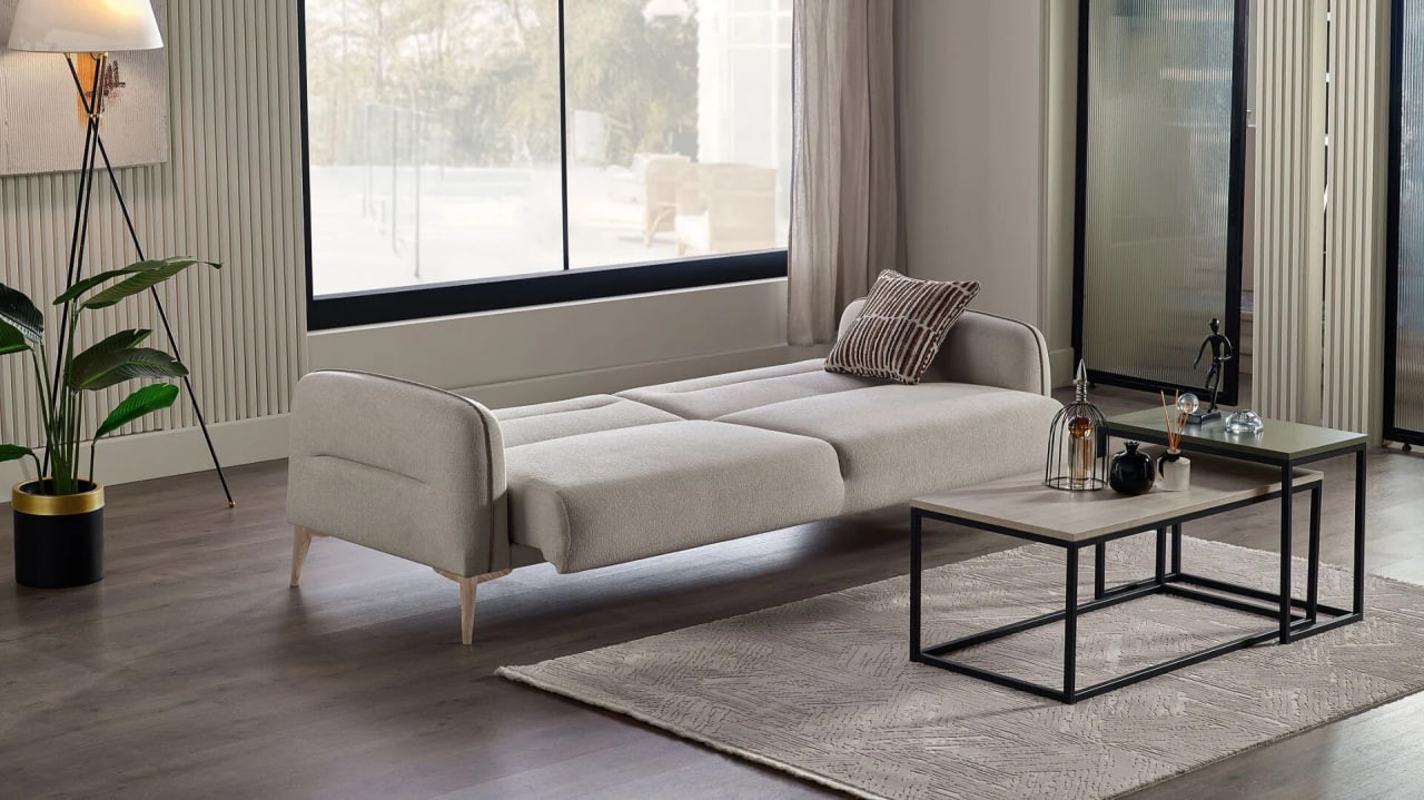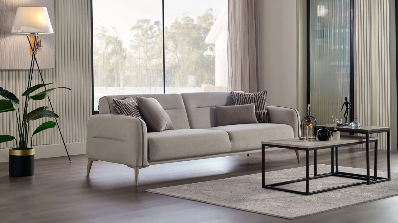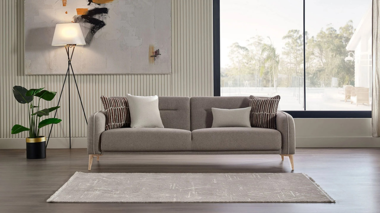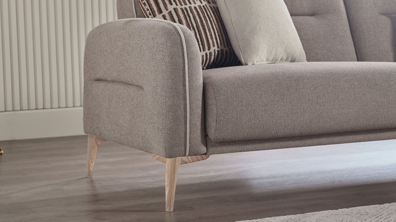 „Canapeaua Riga de la Bellona (extensibilă 225 cm)” — model generos și elegant cu tapițerie moale în nuanțe neutre, cusături fine și perne decorative. Datorită mecanismului extensibil, această canapea oferă atât confort pentru relaxare, cât și posibilitatea de a fi utilizată ca pat complet. Design elegant și funcționalitate care creează o atmosferă plăcută în living.