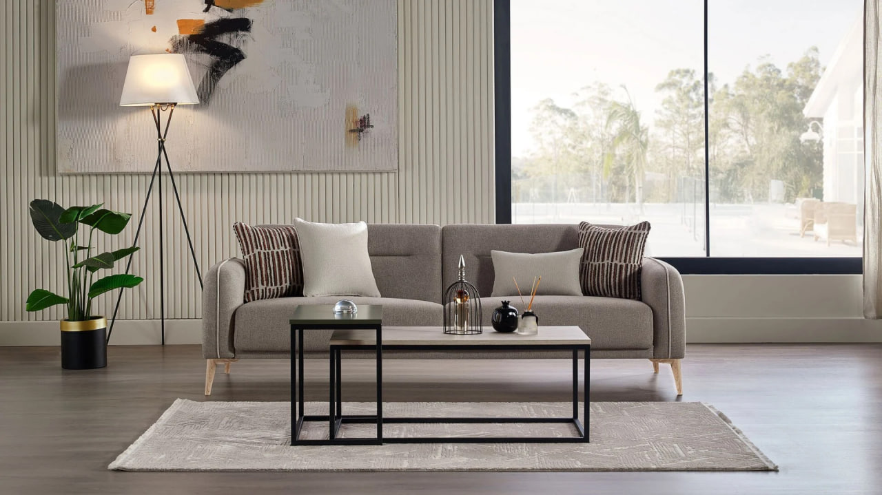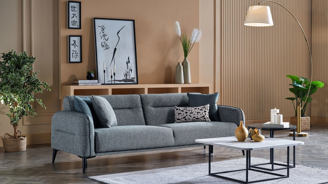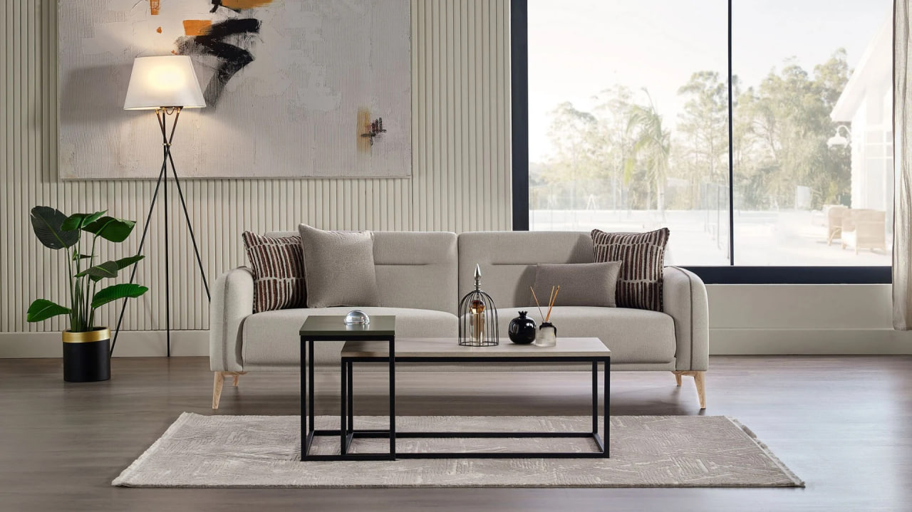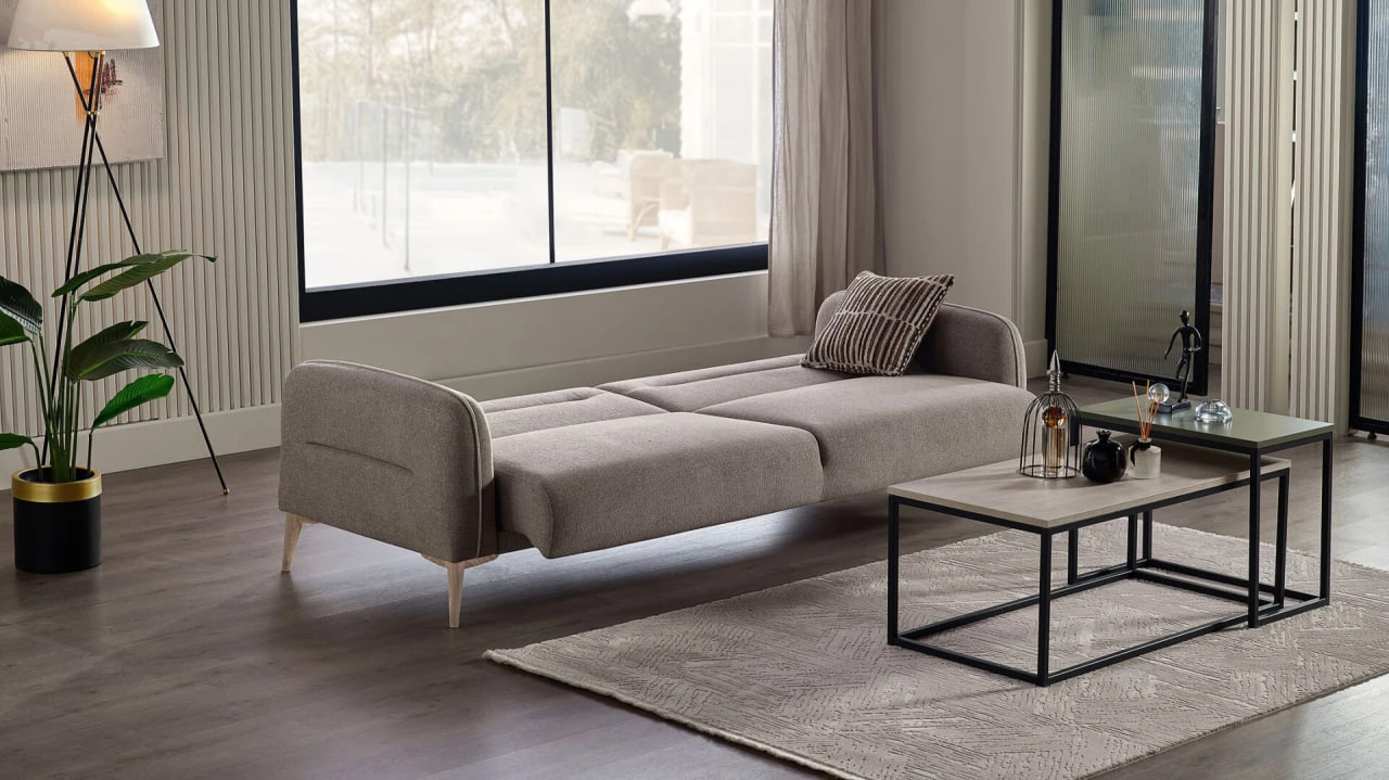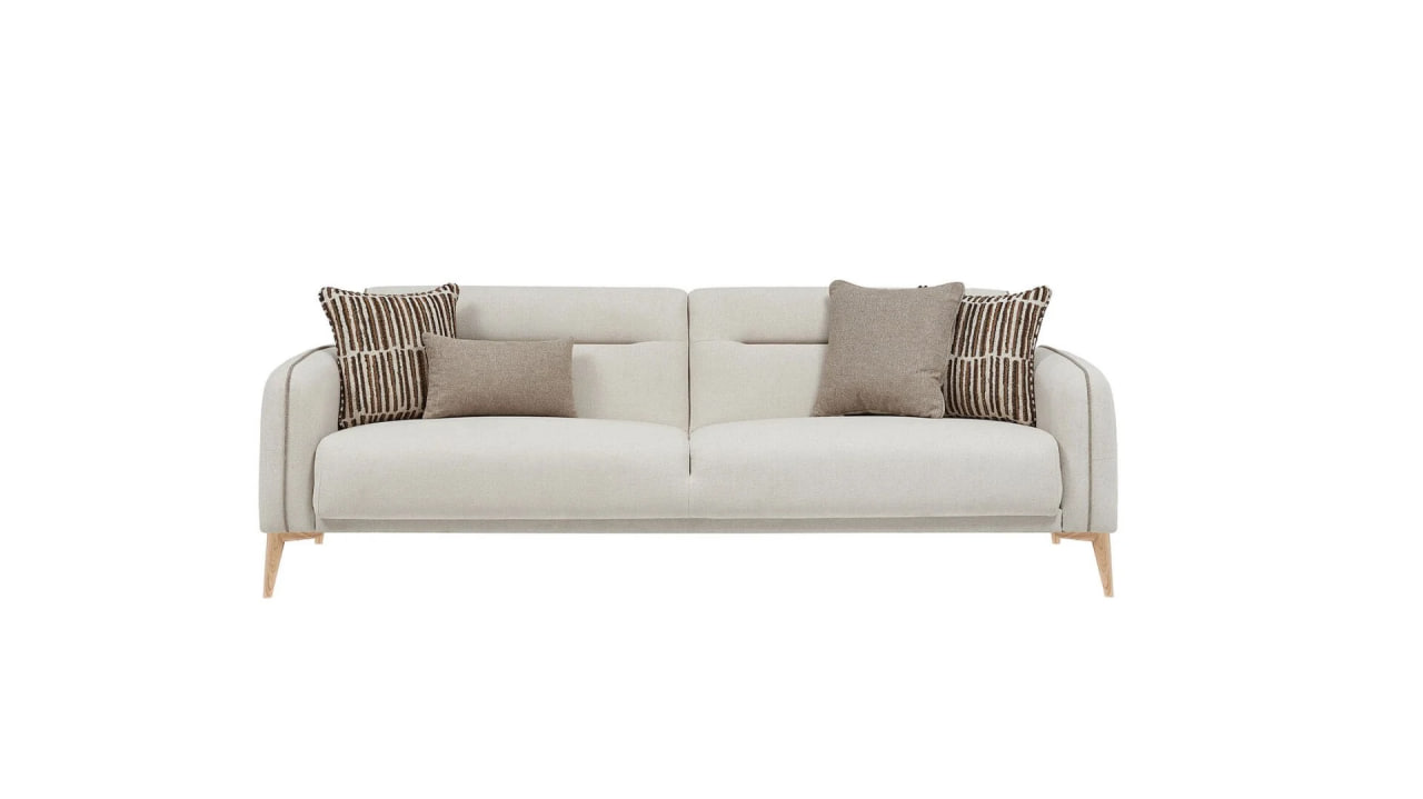 „Canapeaua Riga de la Bellona (extensibilă 225 cm)” — model generos și elegant cu tapițerie moale în nuanțe neutre, cusături fine și perne decorative. Datorită mecanismului extensibil, această canapea oferă atât confort pentru relaxare, cât și posibilitatea de a fi utilizată ca pat complet. Design elegant și funcționalitate care creează o atmosferă plăcută în living.
