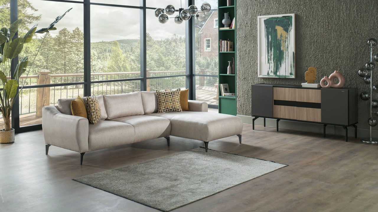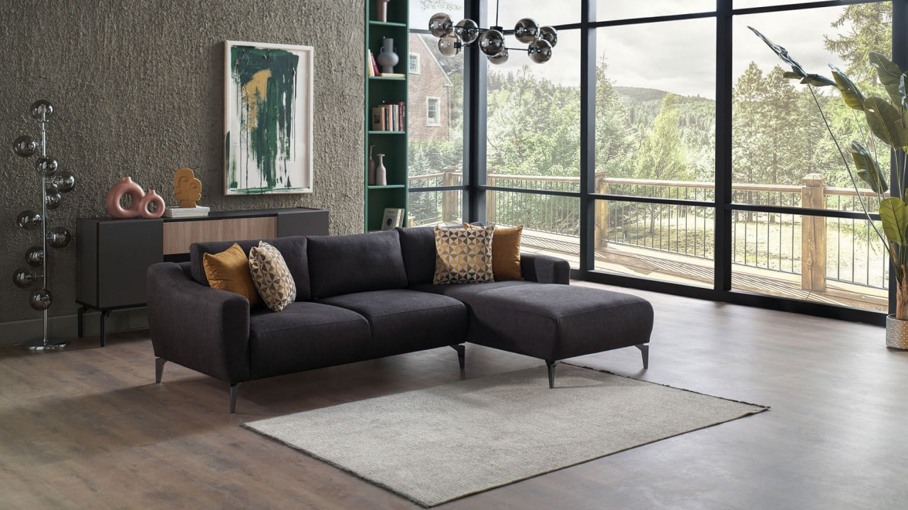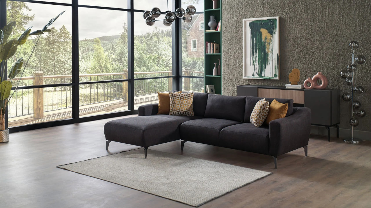Canapeaua de colț Sanvela (262.5x170 cm) — este un model stilat și funcțional, care va asigura confort maxim în livingul dumneavoastră. Canapeaua are o construcție modulară, ce permite asamblarea ei atât cu colț pe dreapta, cât și pe stânga. Designul modern, șezutul comod și dimensiunile practice o fac o alegere ideală pentru un interior confortabil și elegant.