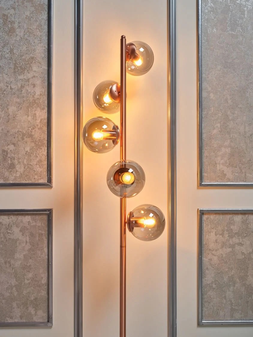 Material: metal și sticlă Informații despre produs: Inaltime maxima (cm): 175 Diametru (cm): 35 Bec: E27 Volt bec: 220 Număr de becuri: 5, becurile nu sunt incluse în preț