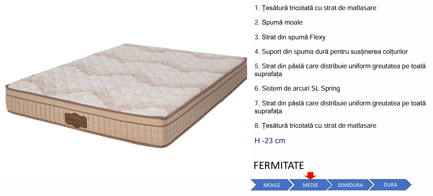 Este o alegere bună pentru cei care vor o soluție de buget echilibrat, fără a sacrifica calitatea. De asemenea, dacă ai un dormitor decorat simplu sau modern, Orient Plus vine cu un design al țesăturii discret și plăcut, care se integrează bine. Practic, i se potrivește oricui vrea un upgrade de la o saltea veche la una nouă, cu caracteristici actuale, dar fără să complice lucrurile – Orient Plus este despre confort simplu și eficient.