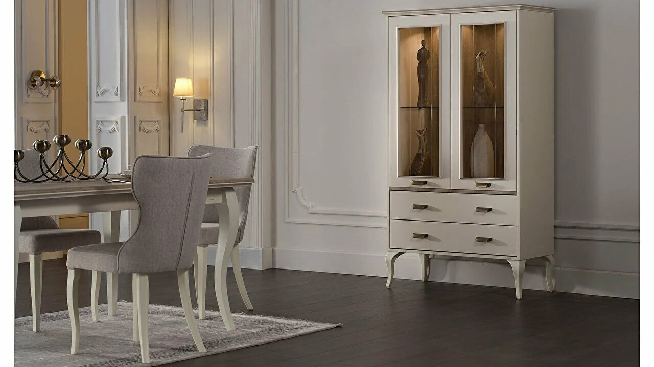 Setul de dining Andera este un set de mobilier elegant pentru sala de mese de la Bellona, realizat într-un stil modern. Setul include o masă extensibilă (până la 206 cm), scaunele Andera stilate, un bufet și vitrină. Acest set este ideal pentru crearea unei zone de luat masa confortabile și funcționale. Puteți cumpăra setul de dining Andera în Chișinău la comandă, cu livrare și instalare gratuită în oraș.
