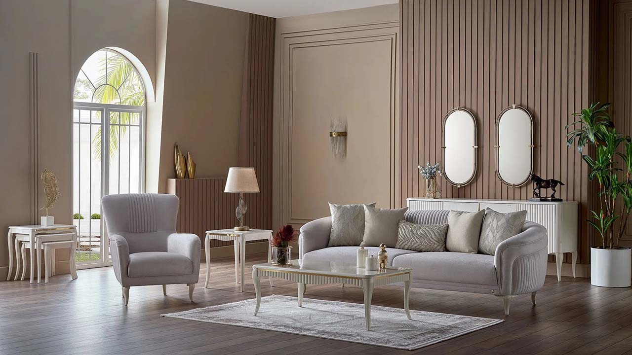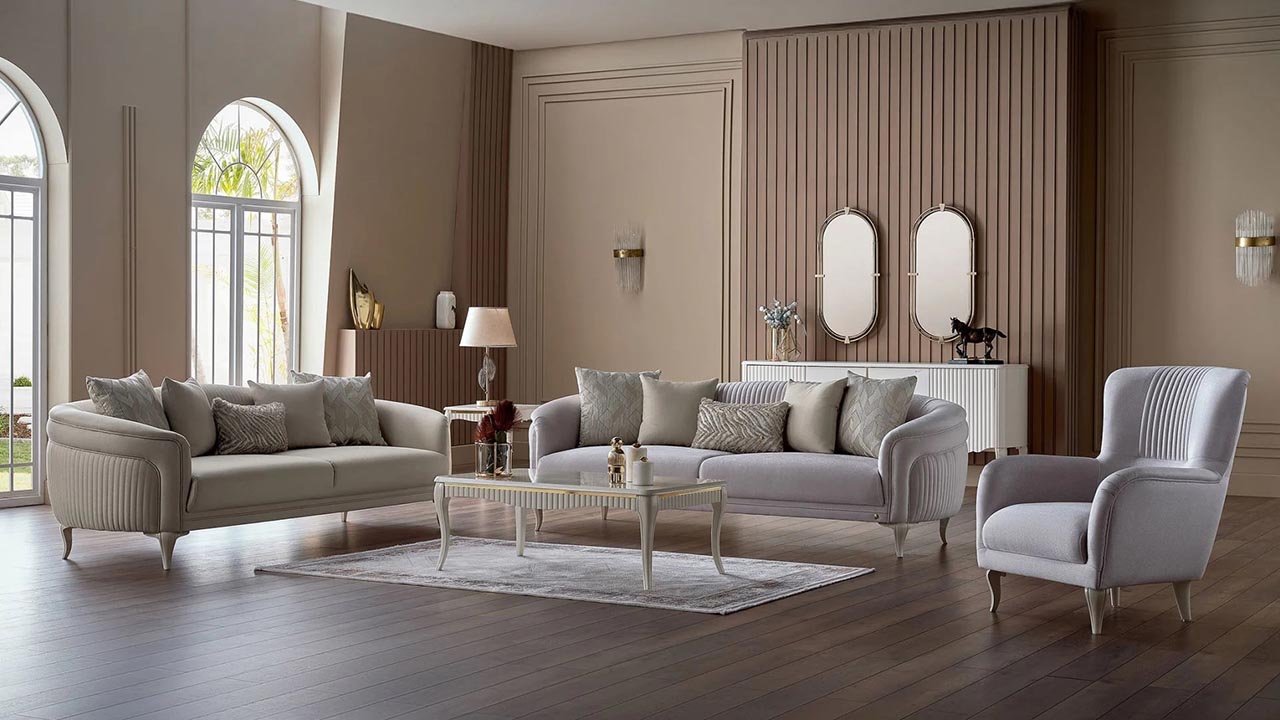 „Set living Victor de la Bellona” — colțar modern Victor în nuanțe deschis-gri-bej, cu tapițerie moale, cusături elegante și design rafinat, integrat armonios într-un living contemporan. Confort, funcționalitate și simplitate. Cumpără Victor Set Living în Moldova — livrare în Chișinău și în întreaga țară.