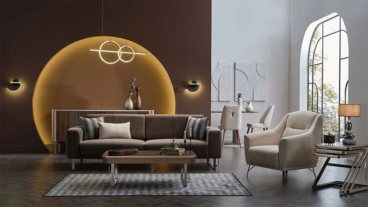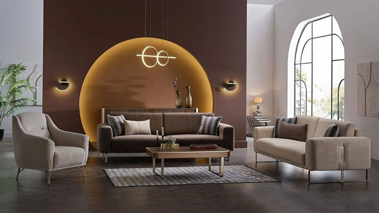 „Set living Mirante de la Bellona” — canapea extensibilă Mirante în nuanțe liniștite de albastru închis / maro, cu tapițerie moale și design elegant, integrat armonios într-un living modern. Confort, stil și utilitate. Cumpără Mirante Set Living în Moldova — livrare în Chișinău și în toată țara.