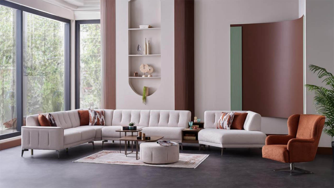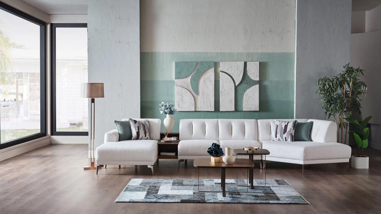 «Угловой гарнитур Atlanta Set Living от Bellona» — светлый угловой диван с мягкой обивкой и изящной формой, отлично смотрящийся в современном интерьере гостиной. Идеальное сочетание стиля и комфорта. Купить Atlanta Set Living в Молдове — доставка по Кишинёву и всей стране.