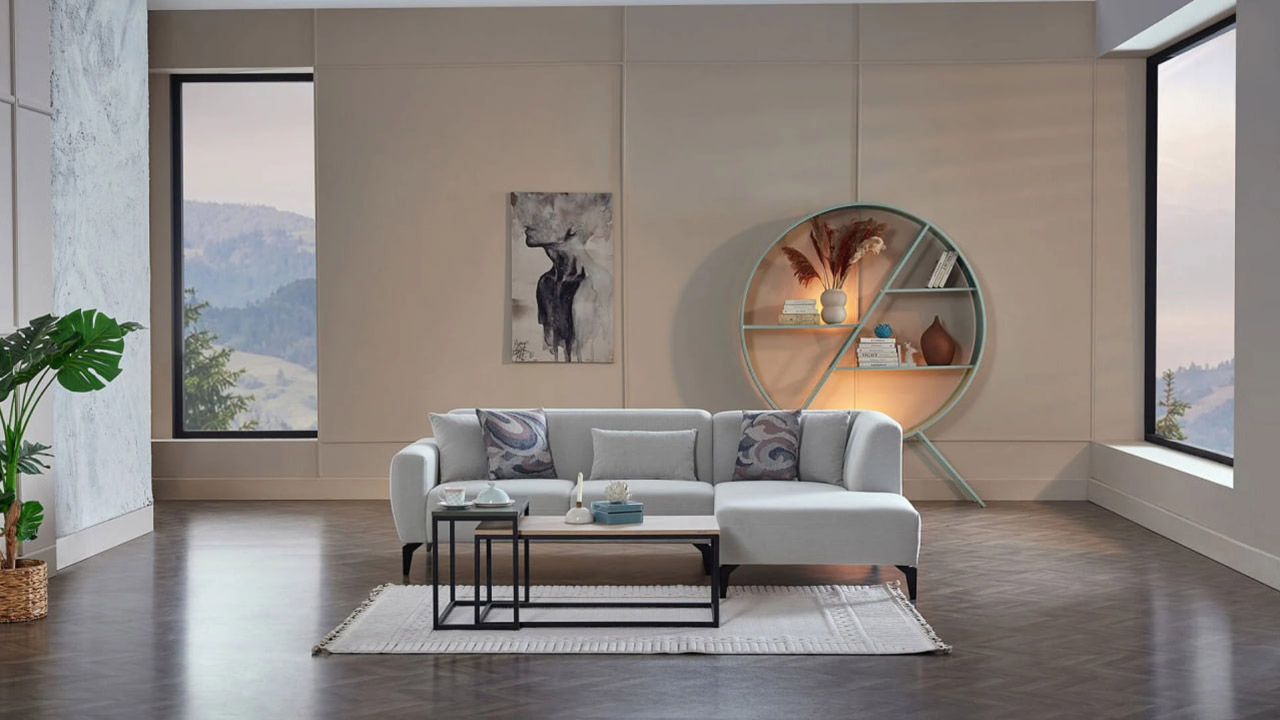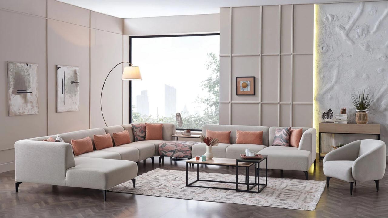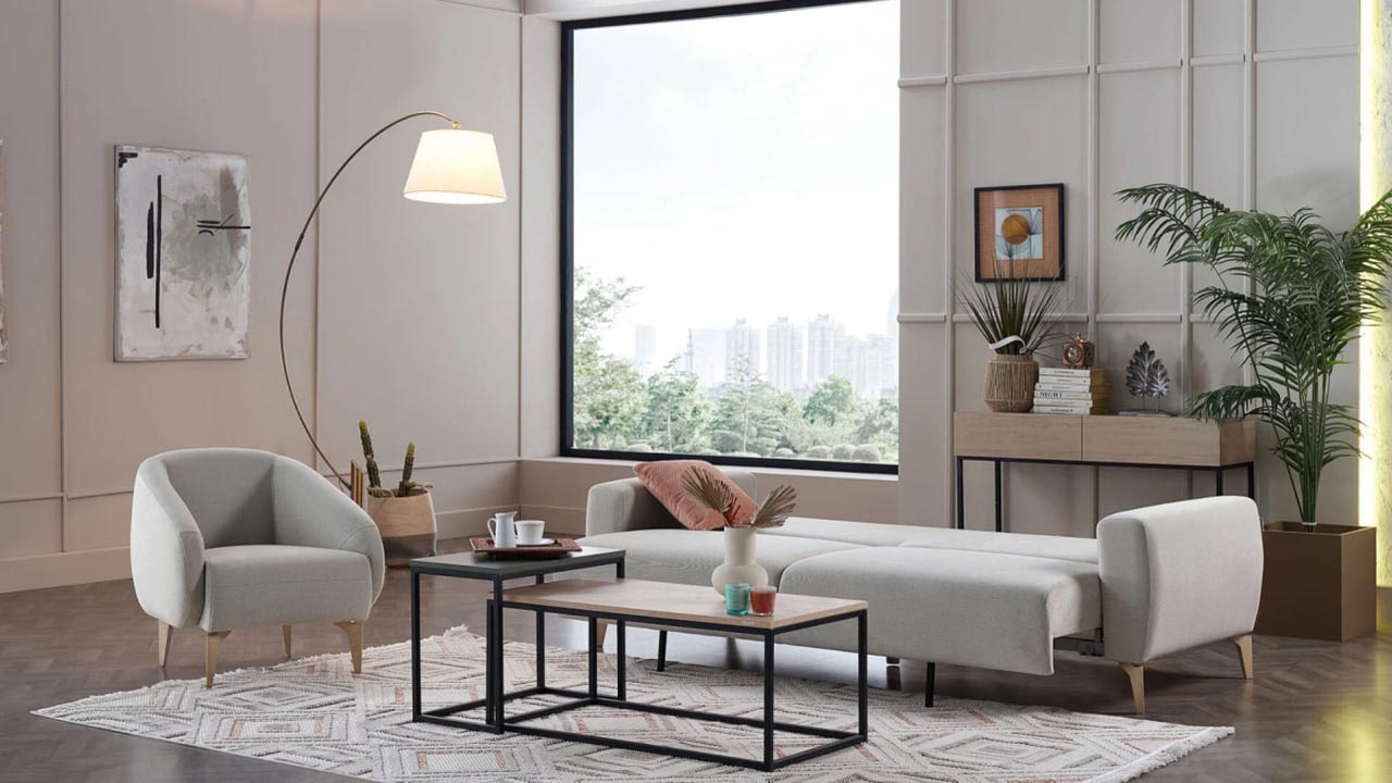 Гостиный гарнитур Orleon от Bellona в элегантных нейтральных оттенках: раскладной диван с мягкой кремовой обивкой и аккуратным дизайном, дополненный креслом и стилевым журнальным столиком, идеально вписывается в современный интерьер. Купить Orleon в Молдове — доставка по Кишинёву и всей стране