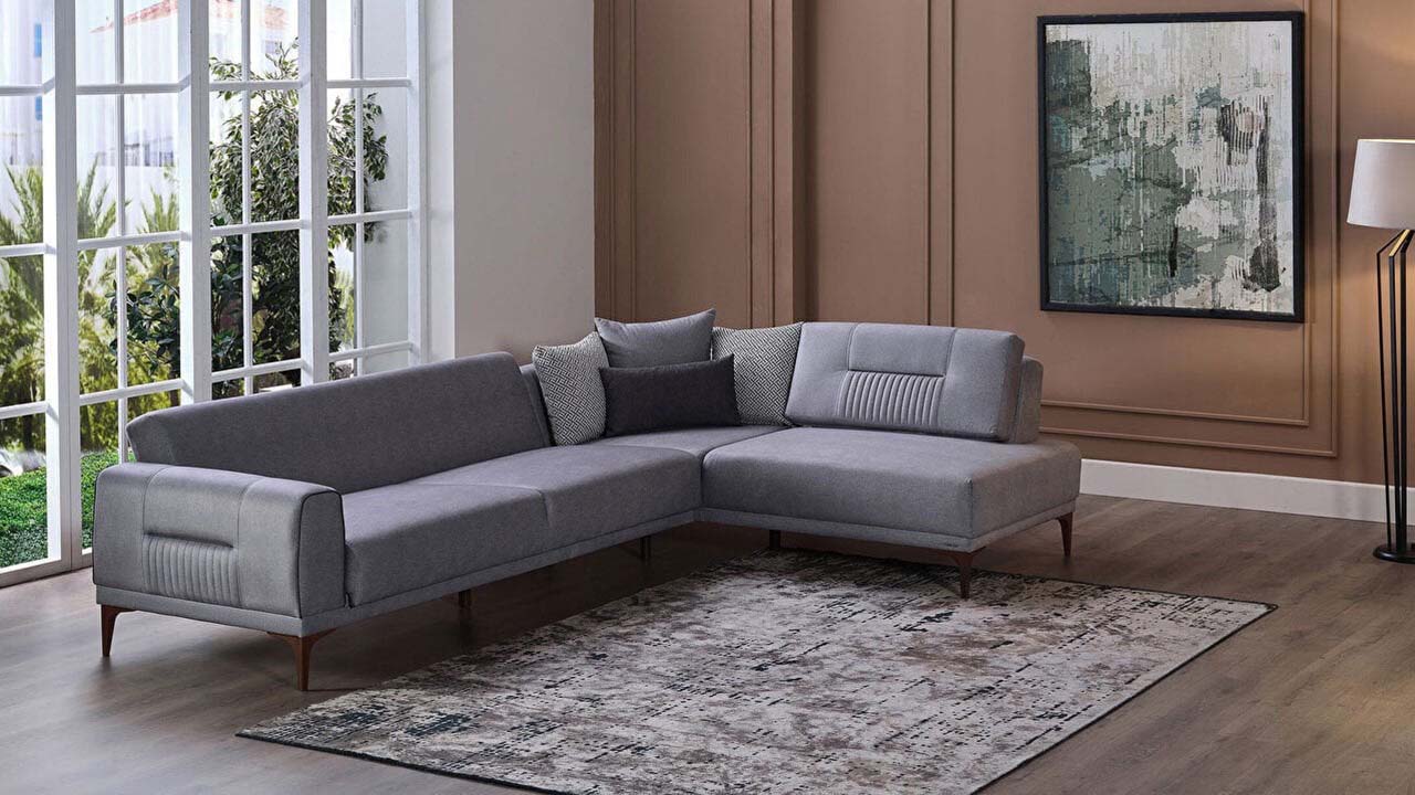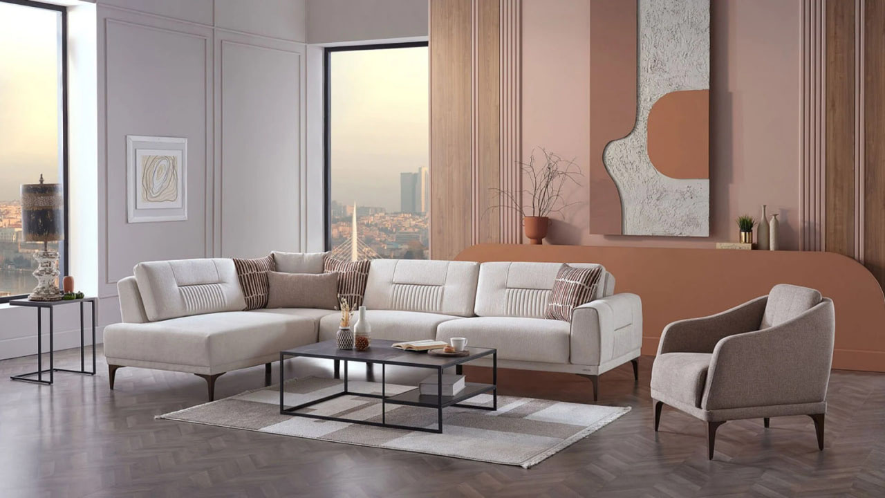 «Гарнитур Seul Set Living от Bellona» — уютный комплект мягкой мебели: диван-угол и кресло в спокойных цветах бежевого или серого, в современном интерьере гостиной. Комфорт, стиль и практичность. Купить Seul Set Living в Молдове — доставка по Кишинёву и всей стране.