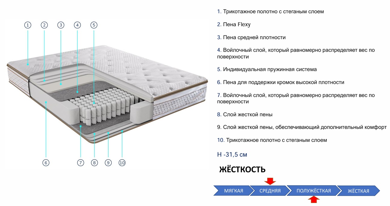 Ортопедический матрас Coppertech Smart от Bellona сочетает инновационную технологию Coppertech с эргономичным дизайном для обеспечения качественного сна. Высотой 31,5 см и системой индивидуальных пружин, он обеспечивает оптимальную поддержку и адаптацию к контурам тела. Верхний слой с матрасом и съемным чехлом с молнией позволяет использовать обе стороны матраса, предлагая переменную жесткость. Технология Coppertech способствует удалению бактерий и микроорганизмов, обеспечивая гигиеничную среду для сна. Идеально подходит для тех, кто ищет качественный ортопедический матрас.