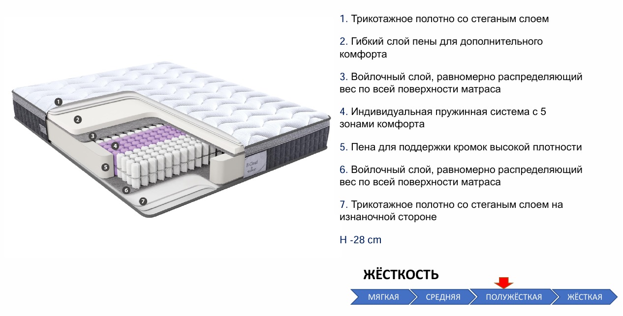 Откройте для себя ортопедический матрас BCloud, разработанный для обеспечения здорового и глубокого сна. Благодаря системе независимых пружин (покет-пружины) и 5 зонам комфорта, матрас идеально подстраивается под анатомию тела, поддерживая позвоночник в правильном положении и снижая давление на ключевые точки.